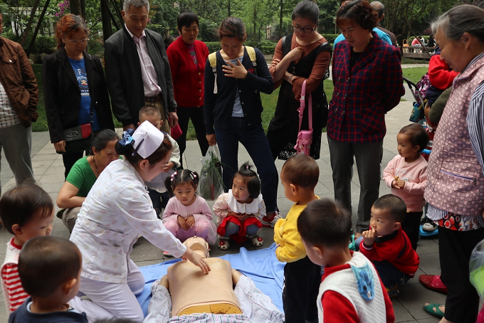 活動(dòng)現(xiàn)場(chǎng),14位專家免費(fèi)為社區(qū)居民提供咨詢、診療,針對(duì)常見疾病如高血壓、糖尿病進(jìn)行健康指導(dǎo)以及中醫(yī)推拿,指導(dǎo)正確用藥;為增強(qiáng)社區(qū)居民應(yīng)對(duì)突發(fā)事件自救意識(shí),提高居民在緊急情況下的自救能力,我院韓麗護(hù)士為現(xiàn)場(chǎng)居民進(jìn)行了心肺復(fù)蘇的培訓(xùn)示范。