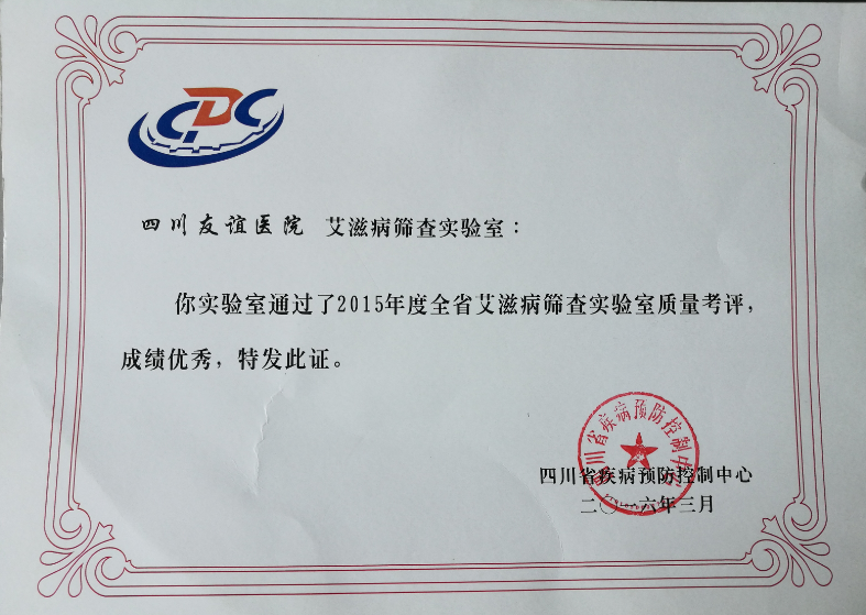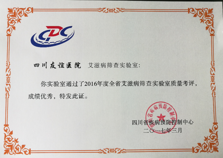 艾滋病威脅著每一個(gè)人和每一個(gè)家庭,防治艾滋病是全社會(huì)的責(zé)任。根據(jù)《全國艾滋病檢測工作管理辦法》規(guī)定,為保證HIV篩查結(jié)果的可靠性,省、市兩級(jí)疾控中心按照省衛(wèi)計(jì)委的要求,每年均對(duì)全省600多家HIV實(shí)驗(yàn)室進(jìn)行質(zhì)量考評(píng),考評(píng)內(nèi)容包括現(xiàn)場檢查和艾滋病抗體盲樣考評(píng),四川友誼醫(yī)院HIV初篩實(shí)驗(yàn)室繼2015年質(zhì)量考評(píng)榮獲滿分后,2016年又以滿分的優(yōu)異成績,被四川省疾病預(yù)防控制中心評(píng)為優(yōu)秀實(shí)驗(yàn)室。