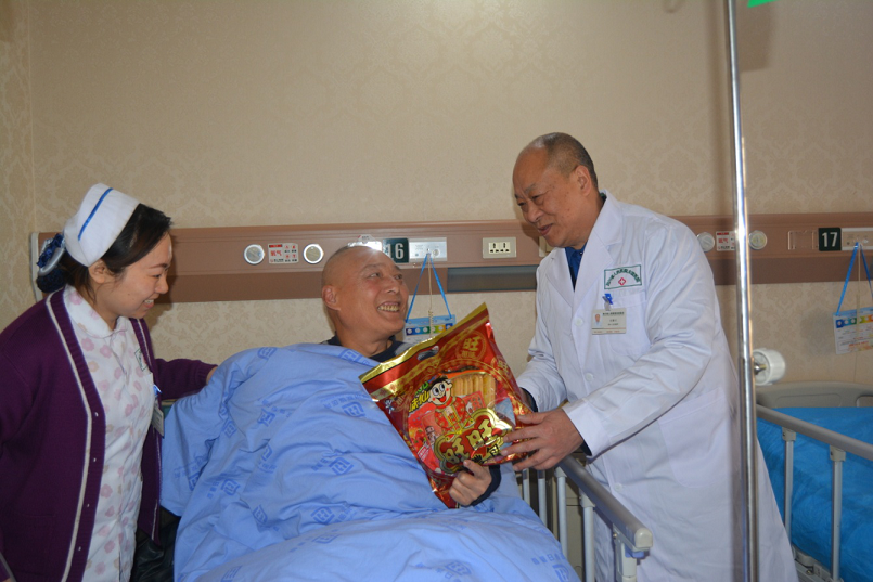 “爆竹聲中一歲除,春風送暖入屠蘇”。2018年2月13日,友誼醫(yī)院住院部的病房傳出一陣陣的歡聲笑語,原來是春節(jié)前夕,王晉川院長、顧興平副院長、趙麗君副院長、謝賢東院長助理率領(lǐng)醫(yī)務部、護理部、人事部、院辦、醫(yī)保辦、采購部、設備后勤科等行政后勤部門相關(guān)人員深入各科室住院病房,看望慰問春節(jié)期間住院的病人,給病員及家屬送去了新春祝福及慰問大禮包。