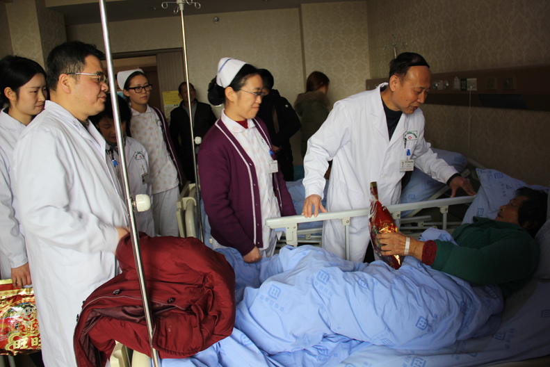 每到一個病房,院領(lǐng)導班子就和大家親切交談,詢問患者病情康復情況,鼓勵他們樹立信心,積極配合醫(yī)生安心治療,鼓勵大家以良好的心態(tài)在醫(yī)院度過快樂的新春佳節(jié)。