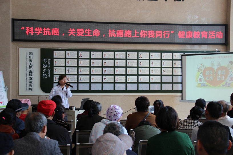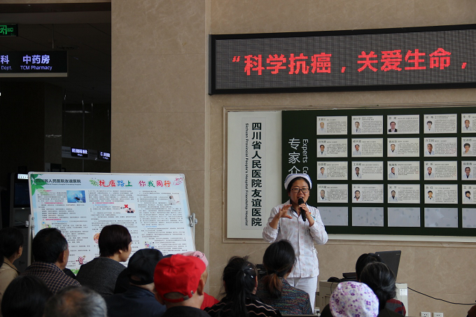 每年4月15日為中國抗癌日,今年4月15―21日是第二十四屆全國腫瘤防治宣傳周,四川友誼醫(yī)院護(hù)理部、院感保健科積極響應(yīng),聯(lián)合腫瘤科、放療科,緊緊圍繞今年“科學(xué)抗癌,關(guān)愛生命――抗癌路上,你我同行” 的主題,開展了系列腫瘤防治宣傳活動。